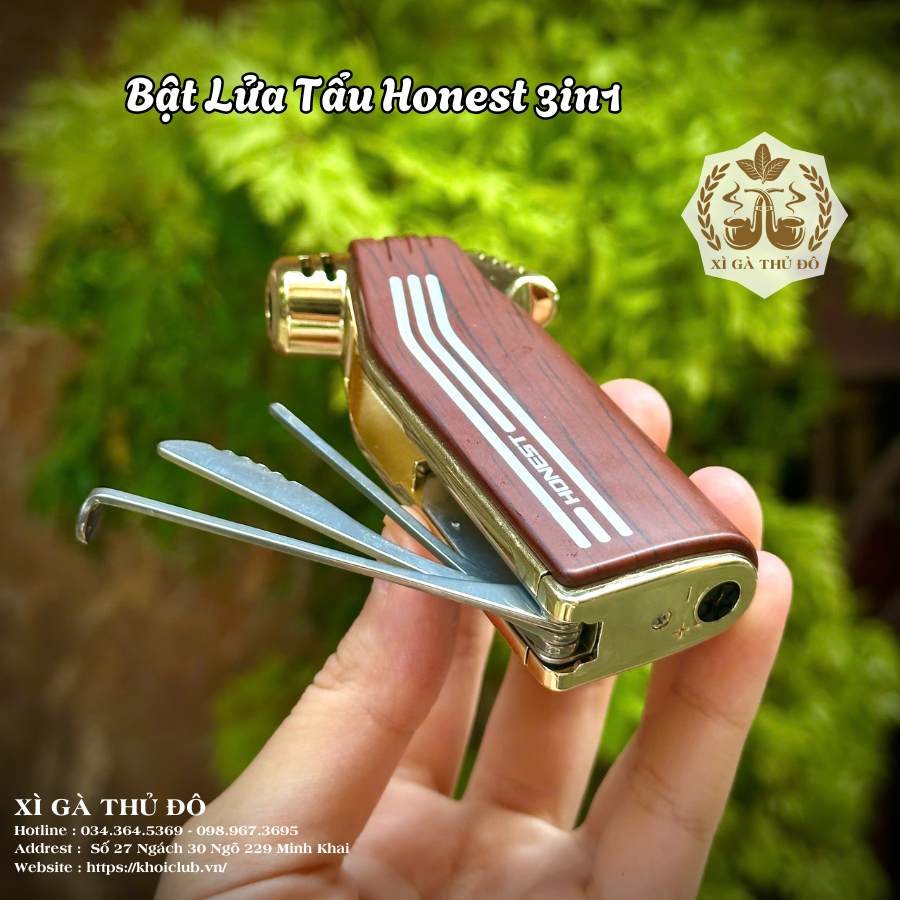 Điểm mạnh lớn nhất của chiếc Bật Lửa Tẩu Honest 3in1 này nằm ở khả năng 3in1 độc đáo, phục vụ mọi nhu cầu từ châm lửa đến bảo dưỡng tẩu.