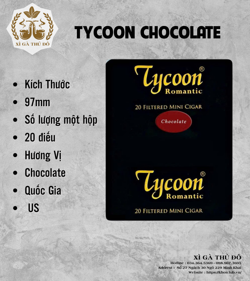 • Tycoon Chocolate (20 điếu – Mỹ)