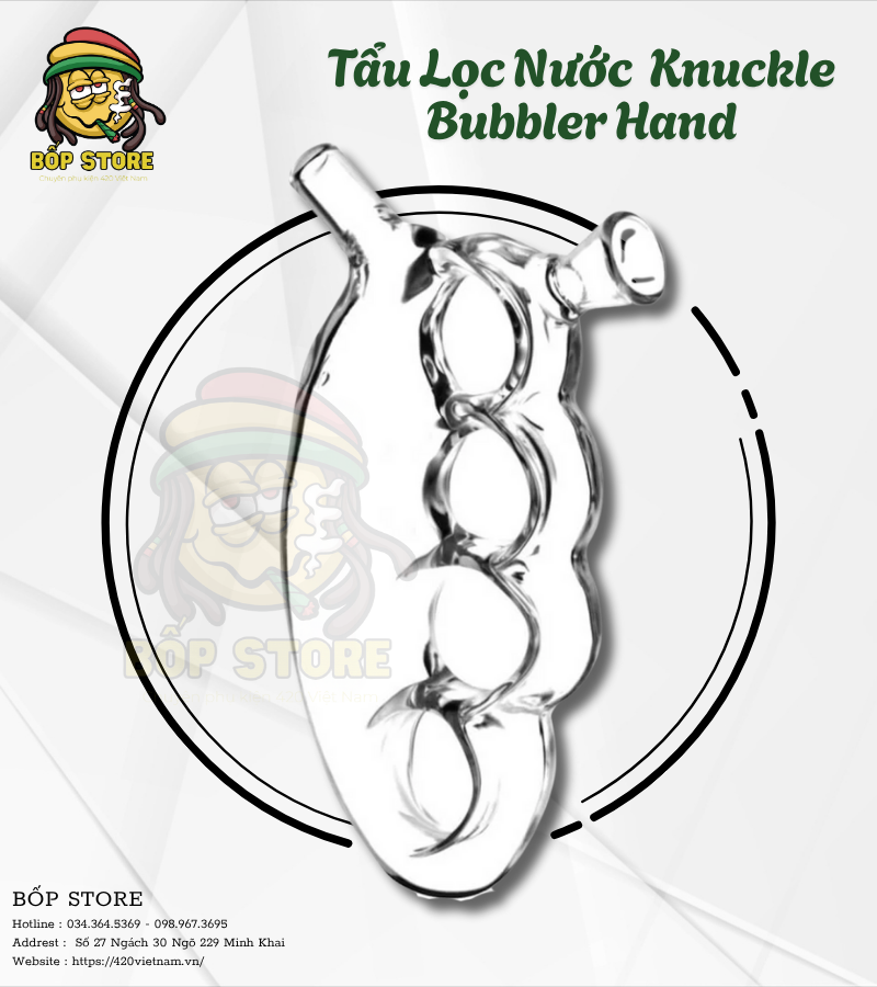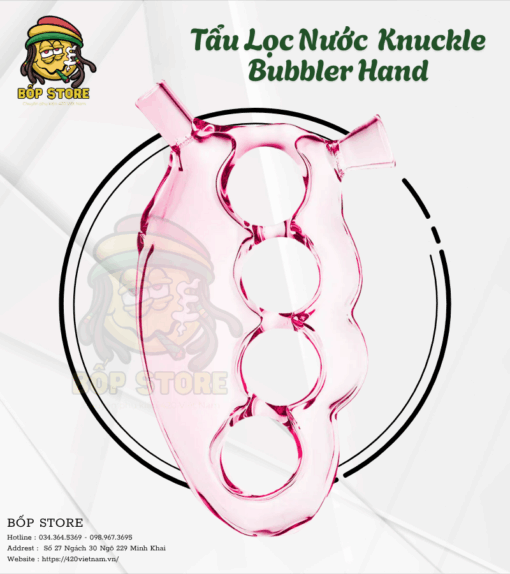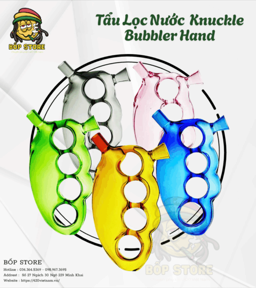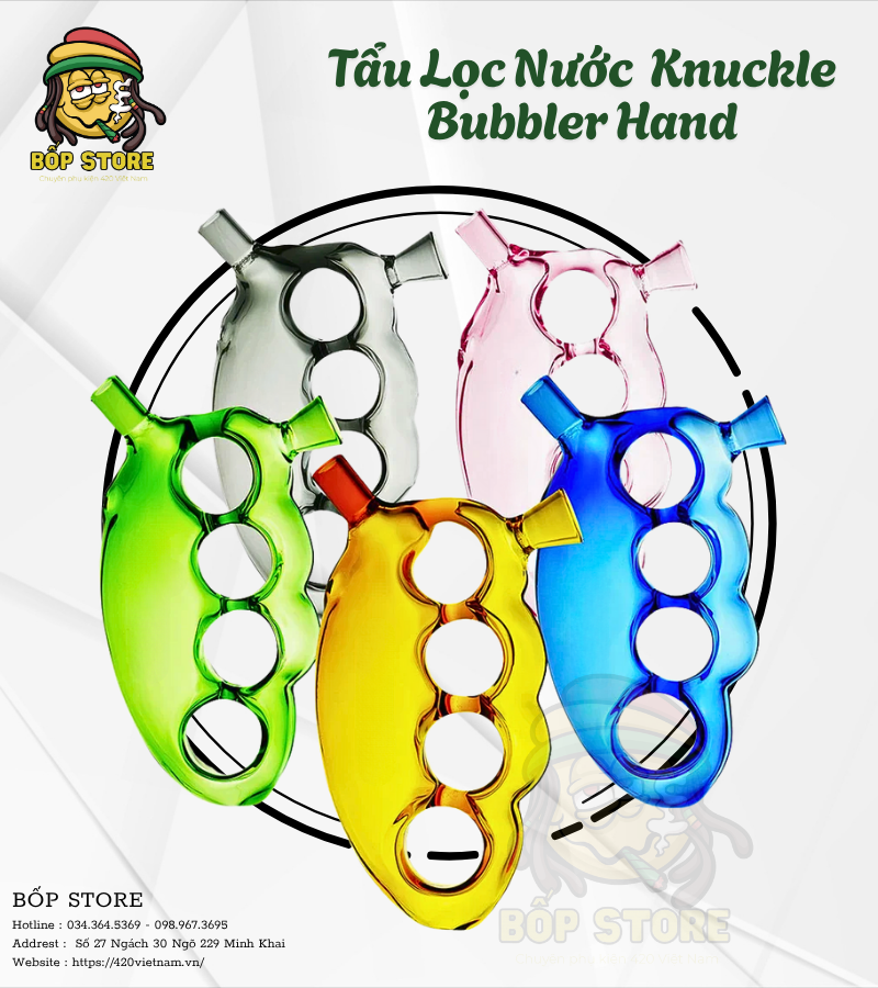 Tẩu Lọc Nước Knuckle Bubbler Hand có nhiều phiên bản màu sắc nổi bật như trắng trong, hồng, xanh, vàng, xanh lá, phù hợp với mọi phong cách – từ cá tính nổi bật đến thanh lịch tinh tế. Thiết kế vừa đẹp mắt, vừa tạo ấn tượng mạnh, khiến Knuckle Bubbler Hand trở thành món đồ sưu tầm không thể thiếu của dân chơi 420.
