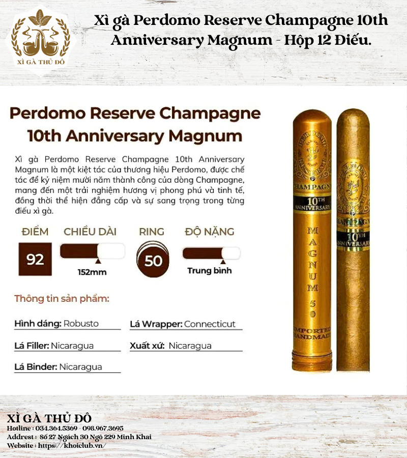 Xì gà Perdomo Reserve Champagne 10th Anniversary Magnum – Hộp 12 Điếu